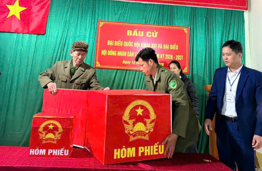 Khai mạc cuộc bầu cử trong không khí trang nghiêm, dân chủ tại Khu vực bỏ phiếu Nhà văn hóa thôn Nà Ro
