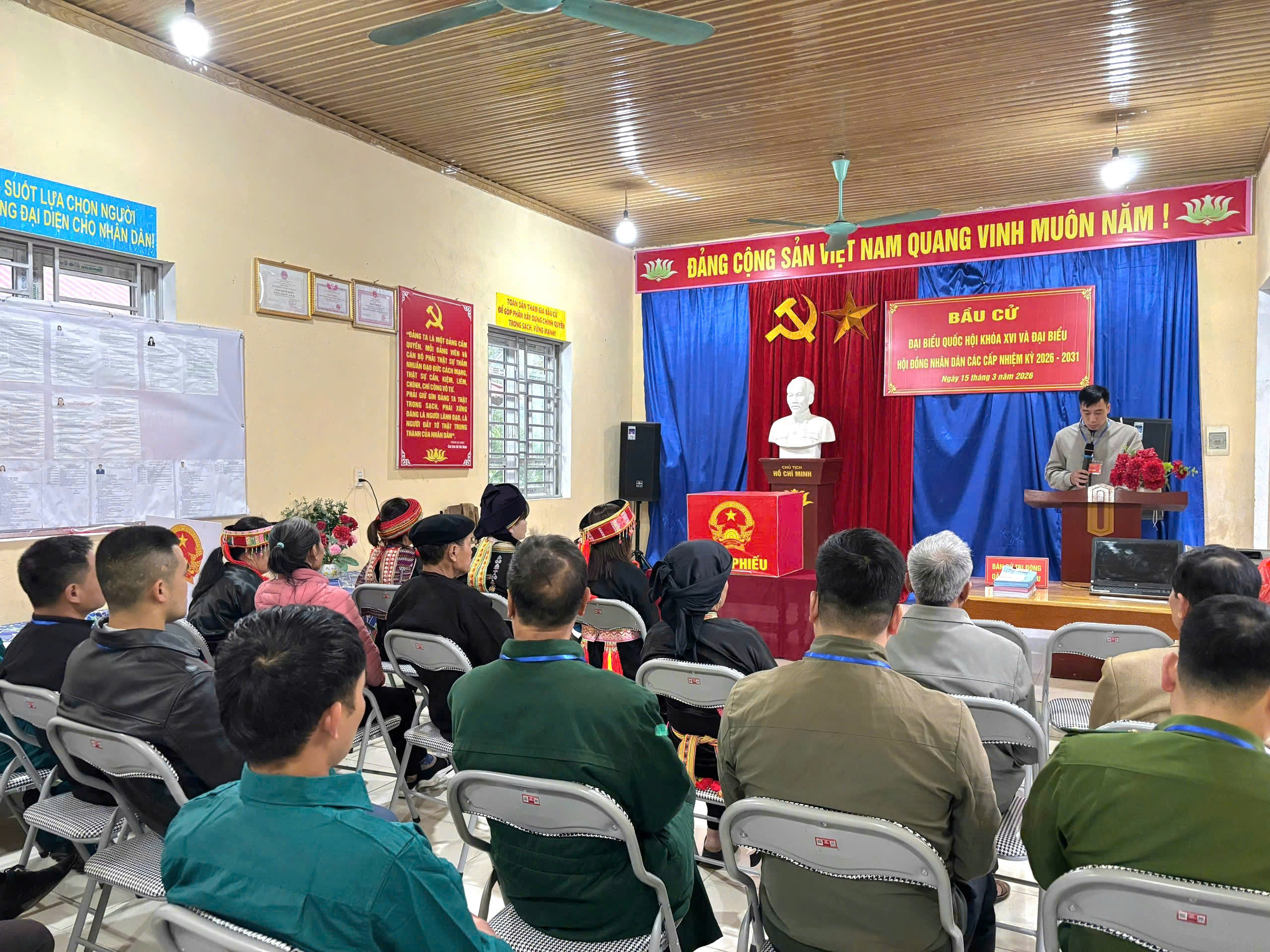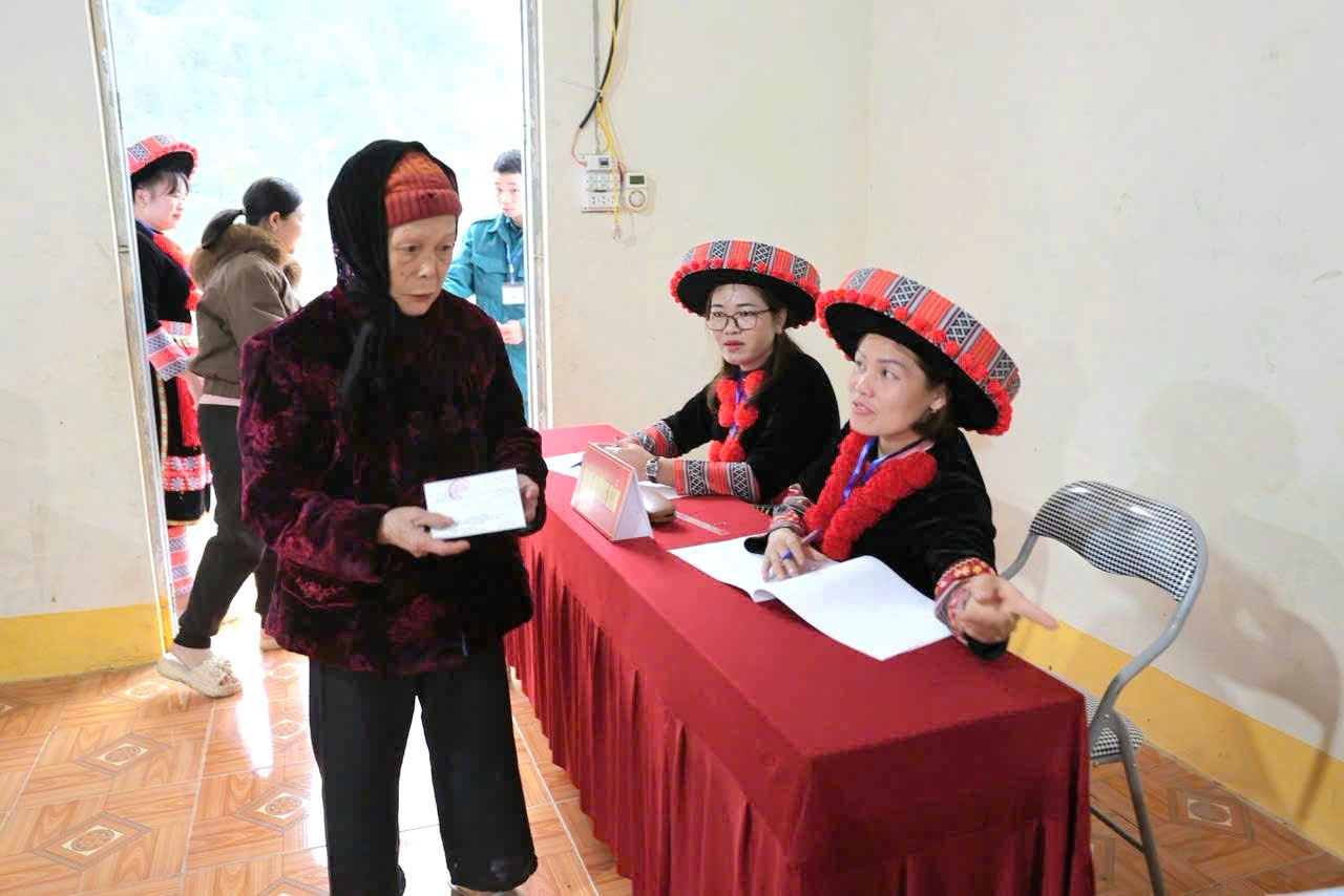 Khai mạc cuộc bầu cử trong không khí trang nghiêm, dân chủ tại Khu vực bỏ phiếu Nhà văn hóa thôn Nà Dài
