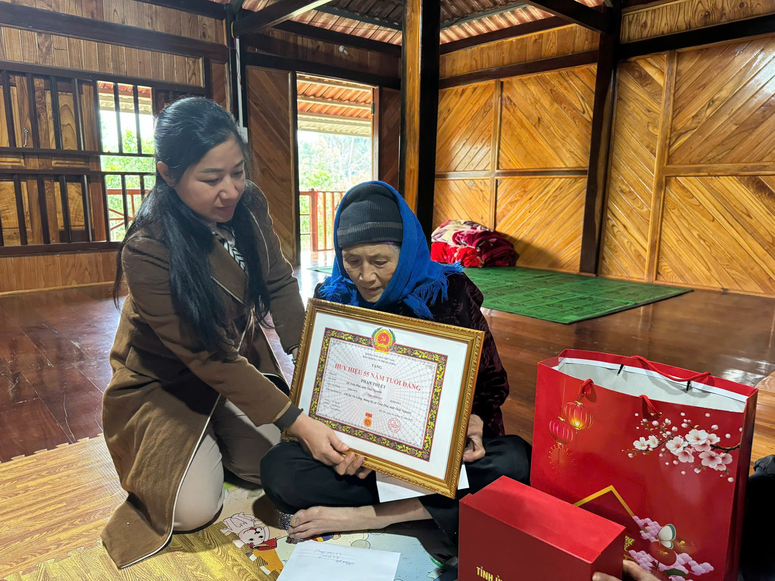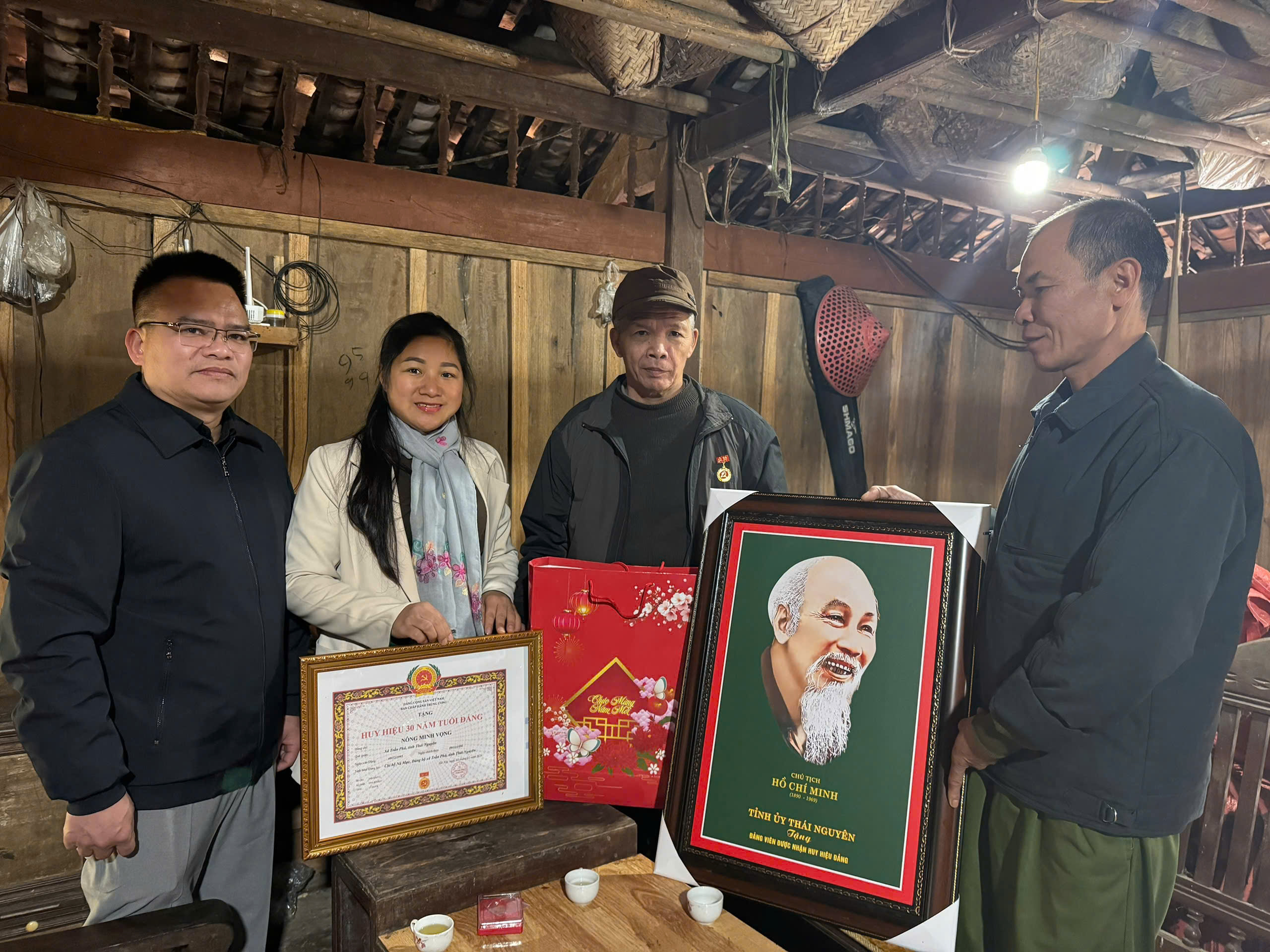 Đồng chí Phó Bí thư Thường trực Đảng ủy xã đã trực tiếp đến và trao tặng Huy hiệu Đảng cho các đồng chí: Đảng viên Phan Thị Ét, Chi bộ Nà Liềng được tặng Huy hiệu 55 năm tuổi Đảng; đảng viên Hoàng Văn Hàm, Chi bộ Khau Moóc được tặng Huy hiệu 40 năm tuổi Đảng; đảng viên Nông Minh Vọng, Chi bộ Nà Mực được tặng Huy hiệu 30 năm tuổi Đảng; đảng viên Nguyễn Văn Cao, Chi bộ Nà Ro được tặng Huy hiệu 30 năm tuổi Đảng.