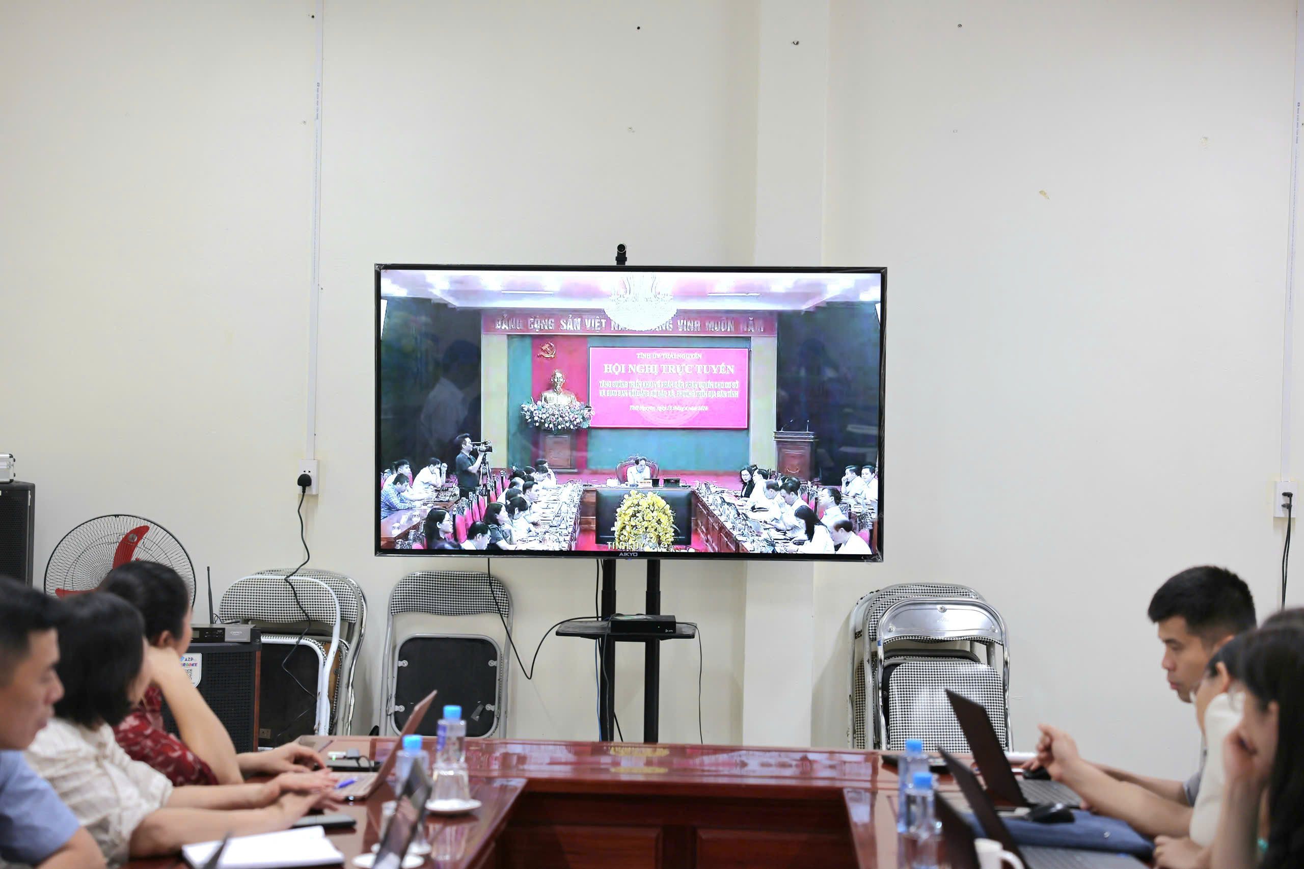 Các đại biểu theo dõi Hội nghị từ điểm cầu của Tỉnh