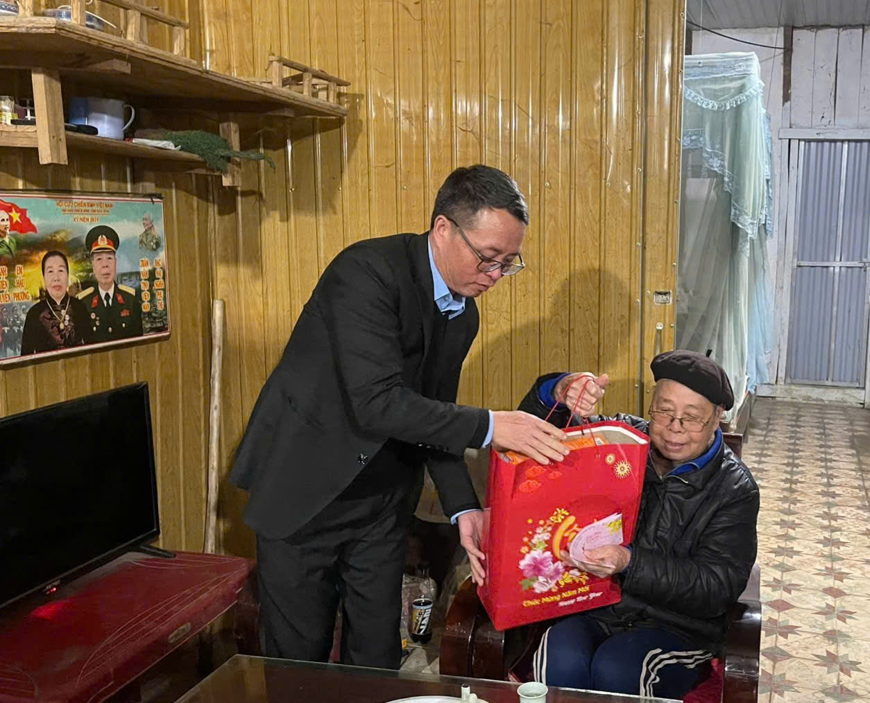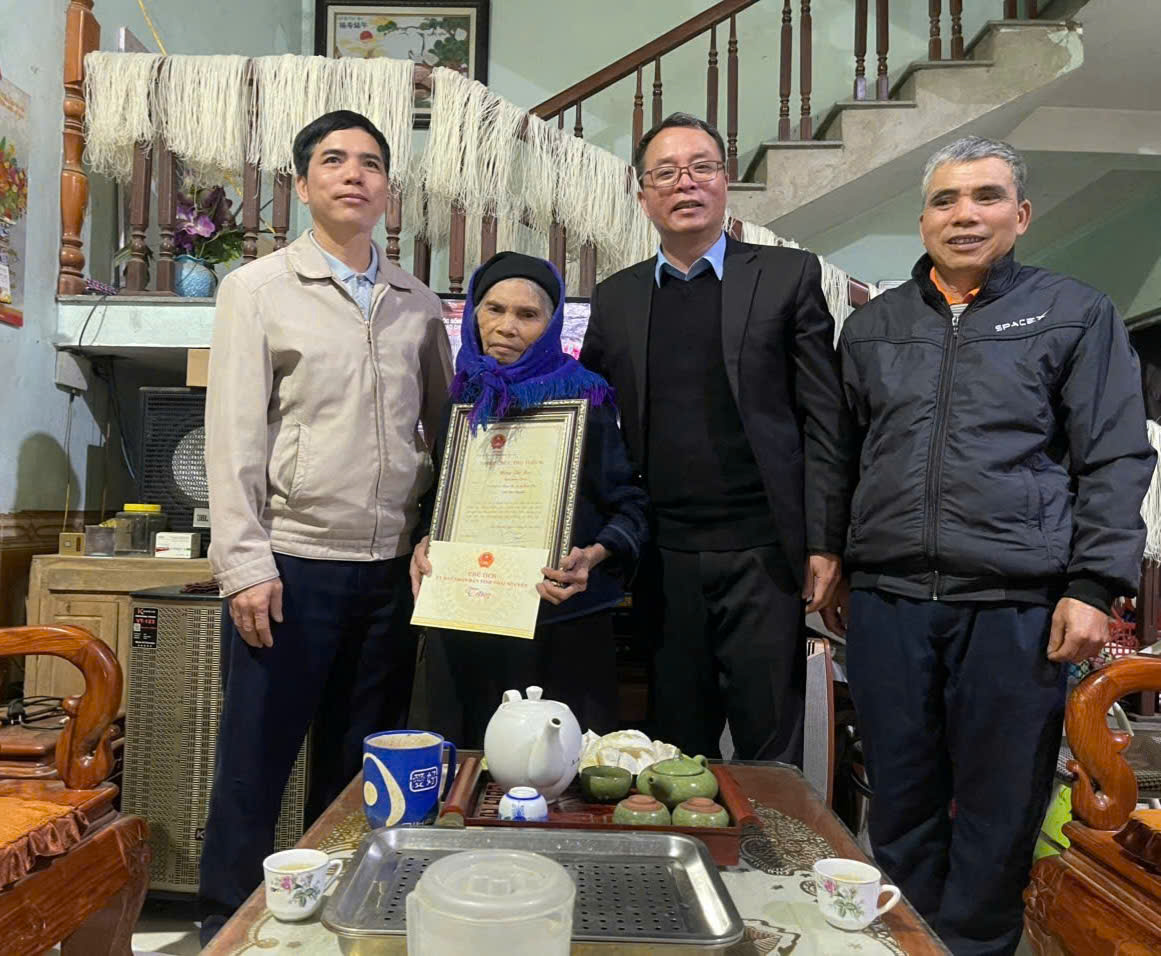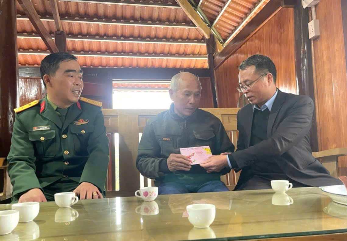 Đồng chí Bí thư Đảng ủy xã đã trao tặng 16 suất quà của Chủ tịch nước, quà theo Nghị quyết 27/2025/NQ-HĐND ngày 14/11/2025 của HĐND tỉnh Thái Nguyên cho người có công với cách mạng, đại diện thân nhân liệt sĩ, gia đình thờ cúng liệt sĩ; tặng quà của UBND xã cho 3 người có công gồm: ông Hoàng Văn Ngọn, thôn Nà Liềng là đối tượng Thương binh, bị ảnh hưởng chất độc hóa học; ông Hứa Văn Cười, thôn Nà A là đối tượng bị ảnh hưởng chất độc hóa học; ông Lương Xuân Cò, thôn Khu Chợ là Thương binh; tặng quà chúc thọ Người cao tuổi 90 tuổi bà Nông Thị Keo, thôn Nà A.