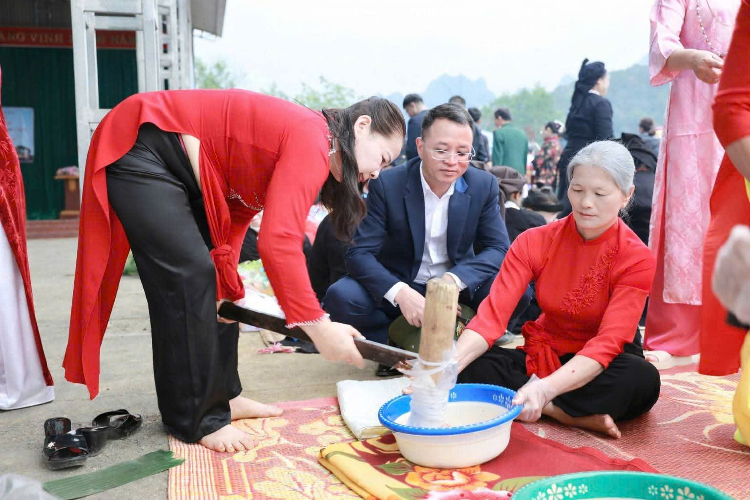 Đồng chí Hoàng Thị Hương, Phó Bí thư Thường trực Đảng ủy xã; đồng chí Trương Mạnh Linh, Phó Bí thư Đảng ủy, Chủ tịch UBND xã dự và động viên các đội thi
