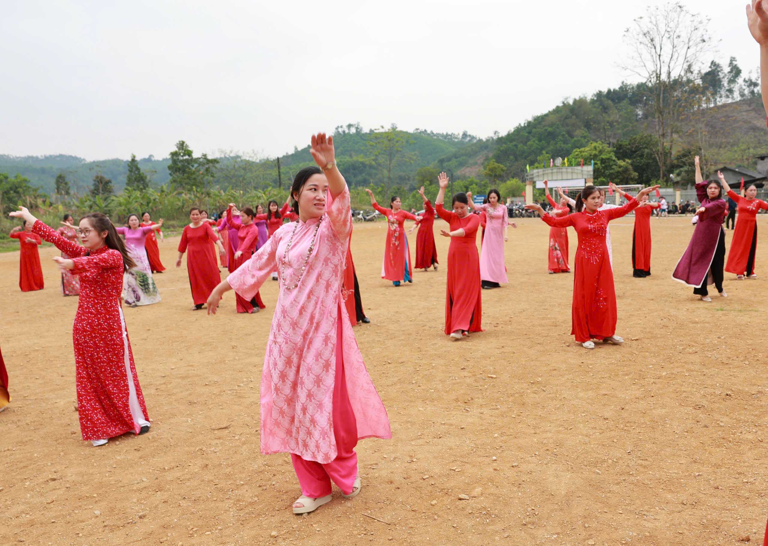 Cùng với đó, Hội Liên hiệp phụ nữ xã đã tổ chức đồng diễn nhảy dân vũ trong trang phục áo dài với không khí sôi nổi đã tạo nên bức tranh sinh động, lan tỏa tinh thần đoàn kết, niềm tự hào về quê hương, đất nước. Mỗi tà áo dài, mỗi động tác đồng diễn dân vũ không chỉ tôn vinh vẻ đẹp truyền thống mà còn thể hiện sự tự tin, khát vọng vươn lên của phụ nữ xã nhà trong thời đại mới../.