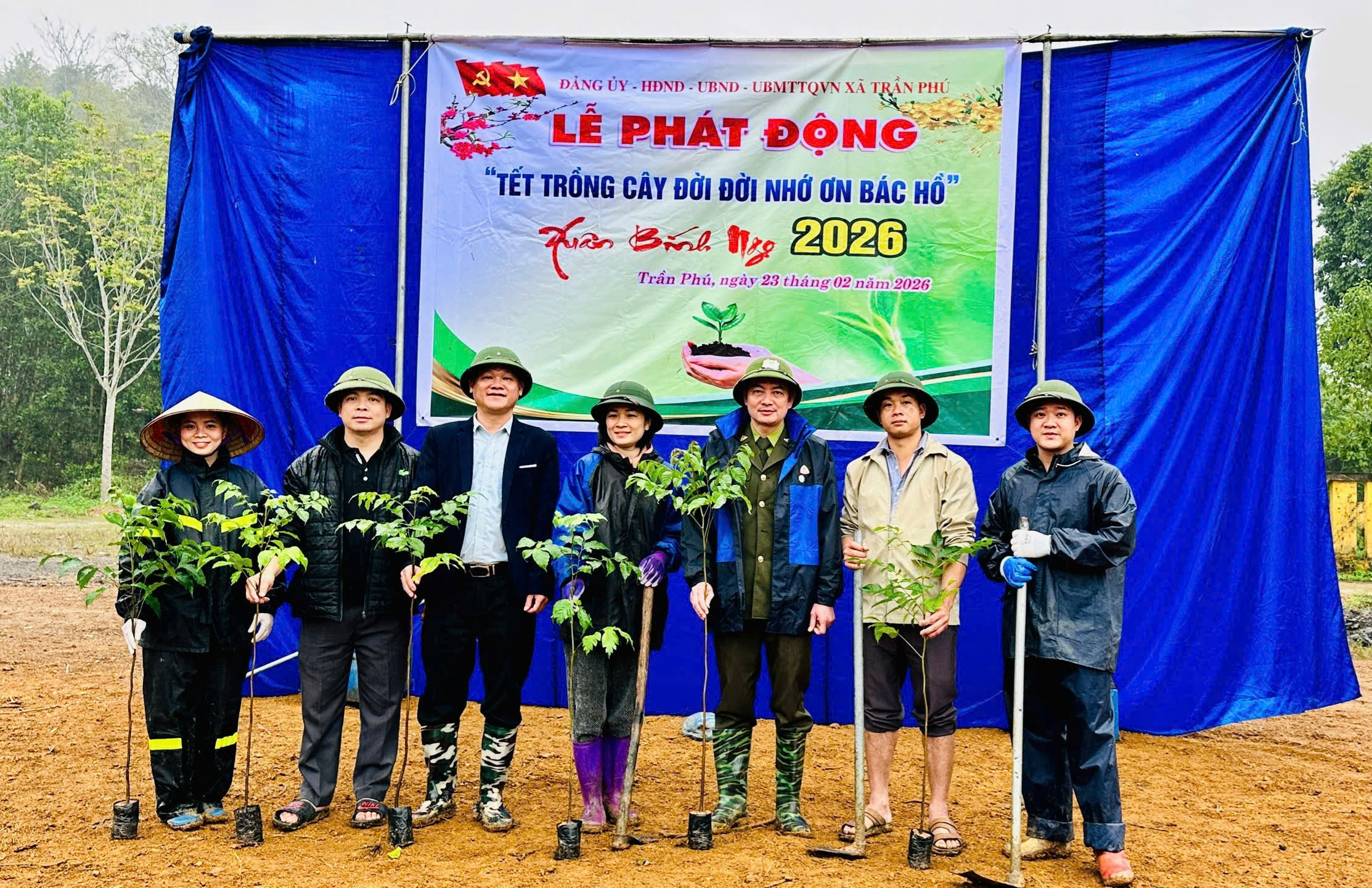 Hưởng ứng Lời kêu gọi Tết trồng cây của Chủ tịch Hồ Chí Minh, sáng 23/02 (tức mồng 7 Tết Bính Ngọ 2026), tại Trụ sở Ban Chỉ huy Quân sự xã, Đảng ủy, HĐND, UBND, UB.MTTQ Việt Nam xã Trần Phú tổ chức Lễ phát động “Tết trồng cây đời đời nhớ ơn Bác Hồ” Xuân Bính Ngọ năm 2026.